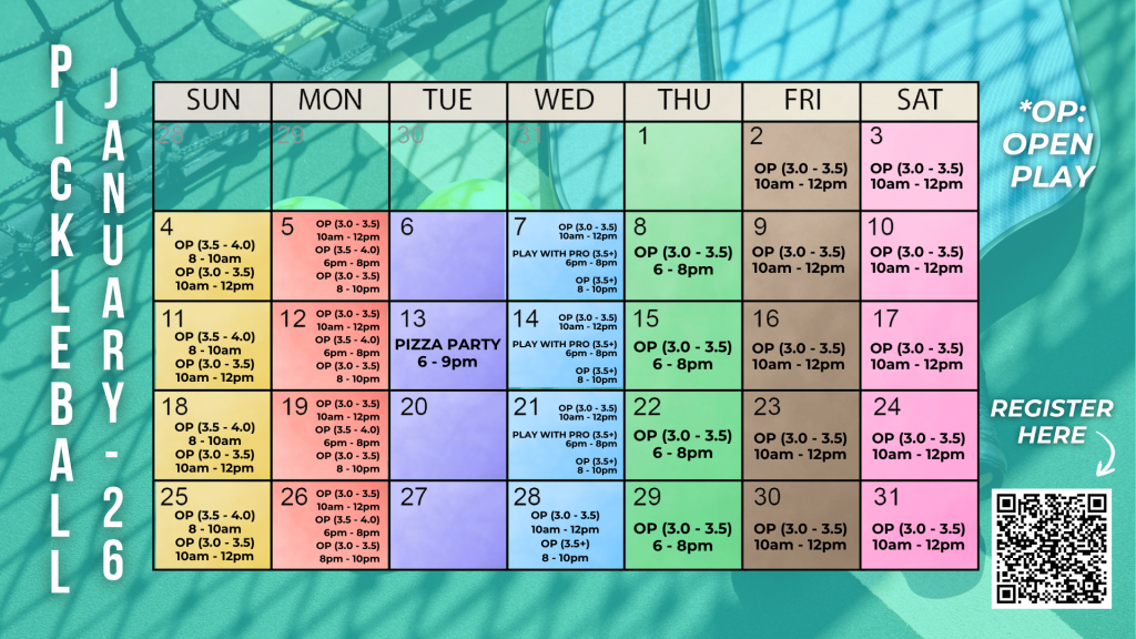 PICKLEBALL schedule january 2026
